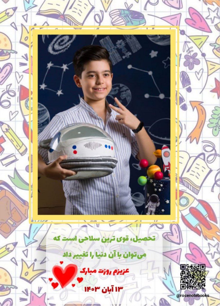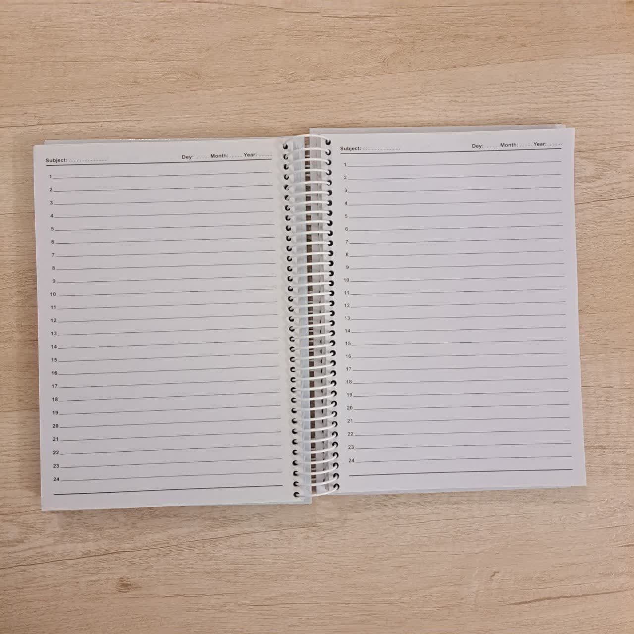 دفتر با طرح روی جلد سفارشی در اندازهی ۲۲/۵ در ۱۶ به صورت دو طرف چاپ قابل ارائه میباشد. میتوانید تعداد صفحات داخل دفتر، نوع جلد، متن روی جلد و هرچیزی را نیز بسته به نیاز خود سفارشی کنید. پس از نهایی شدن خرید و پرداخت وجه، عکسهای خود را از طریق دکمهی ارسال فرم برای ما ارسال کنید.
