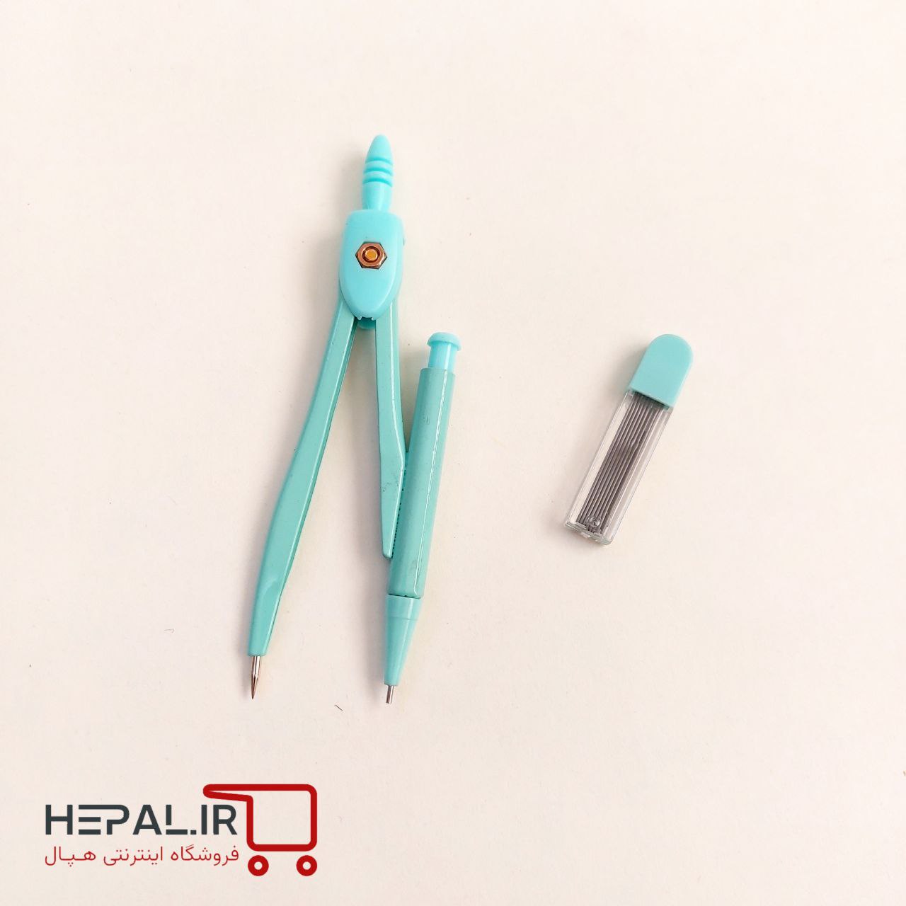 پرگار اتودی فلزی به همراه یک بسته نوک در جعبهای پلاستیکی