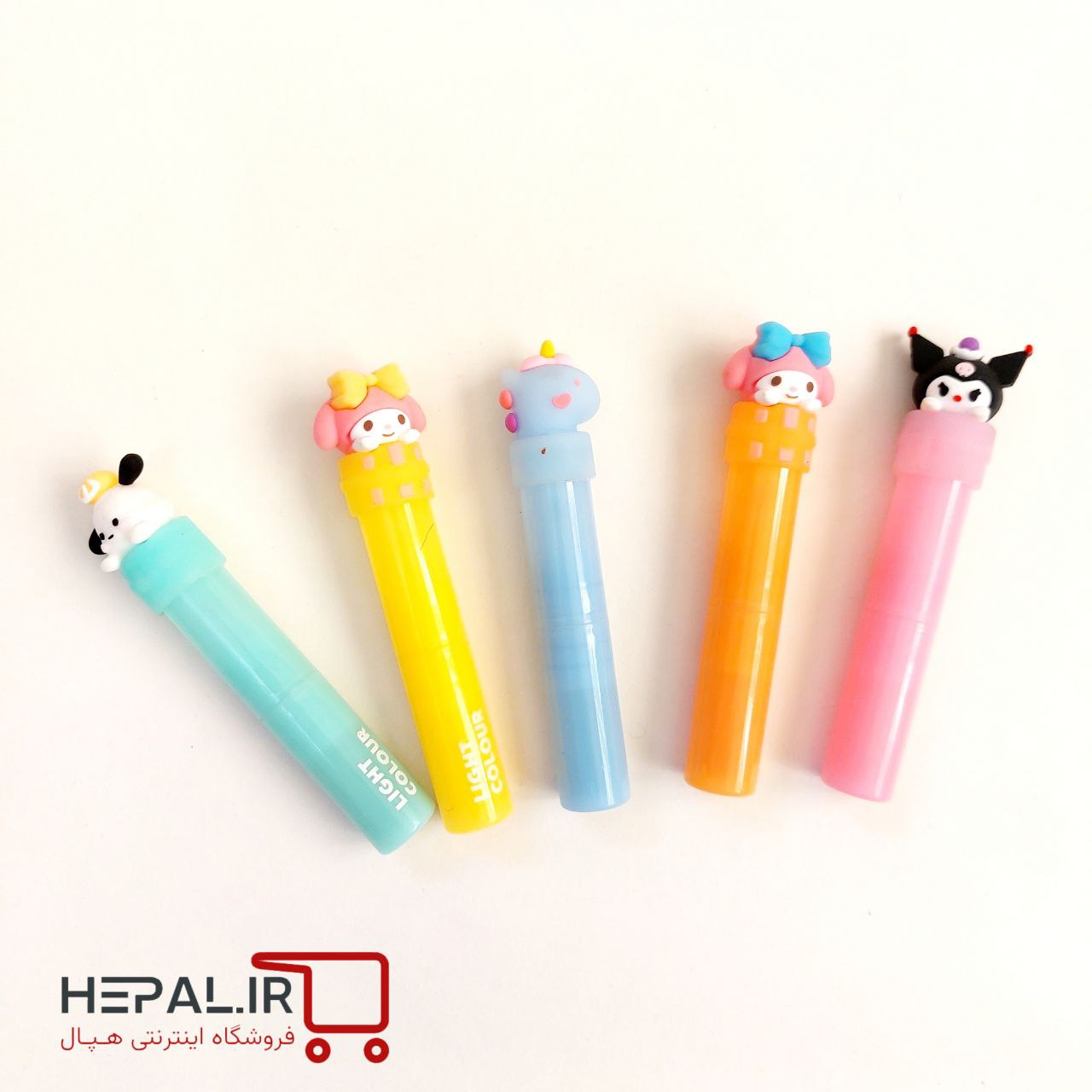 هایلایتر تکی فانتزی با طراحی عروسکی و رنگهای پاستیلی، دارای نوک تخت و نمدی است و با ارتفاع ۱۱ سانتیمتر در رنگهای صورتی، نارنجی، بنفش، سبز، آبی و زرد موجود است. بستهبندی ندارد و محصولی از کشور چین است.