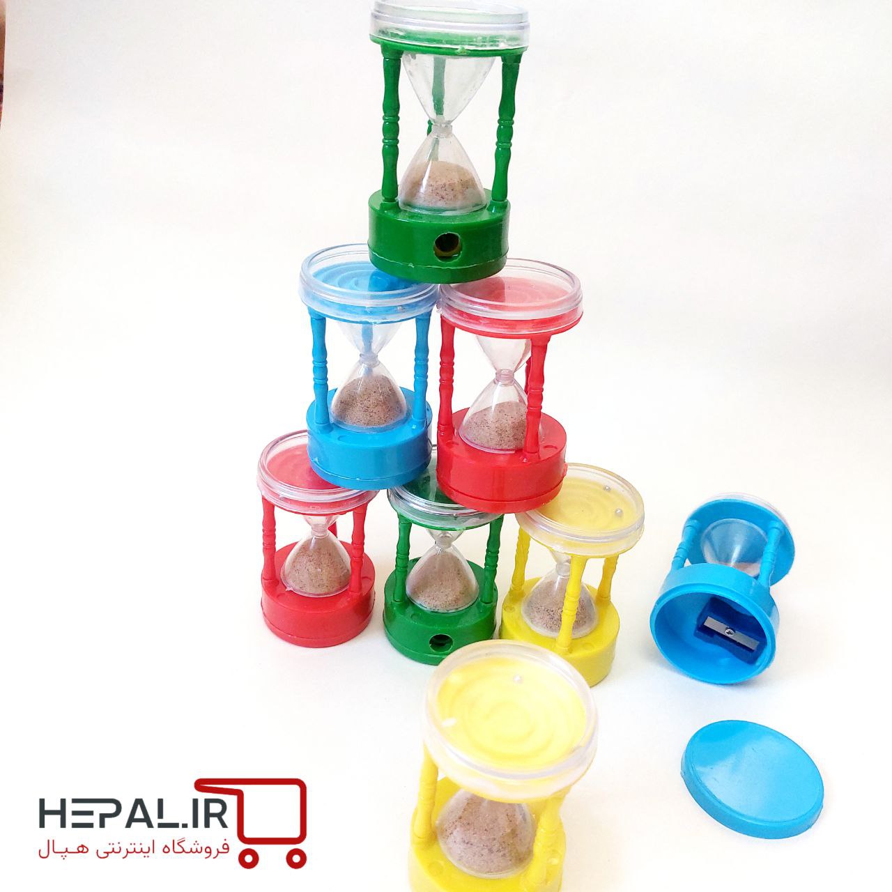 قسمت پایین این ساعت شنی تراش مخزندار است و قسمت بالایی آن بازی ماز دارد.